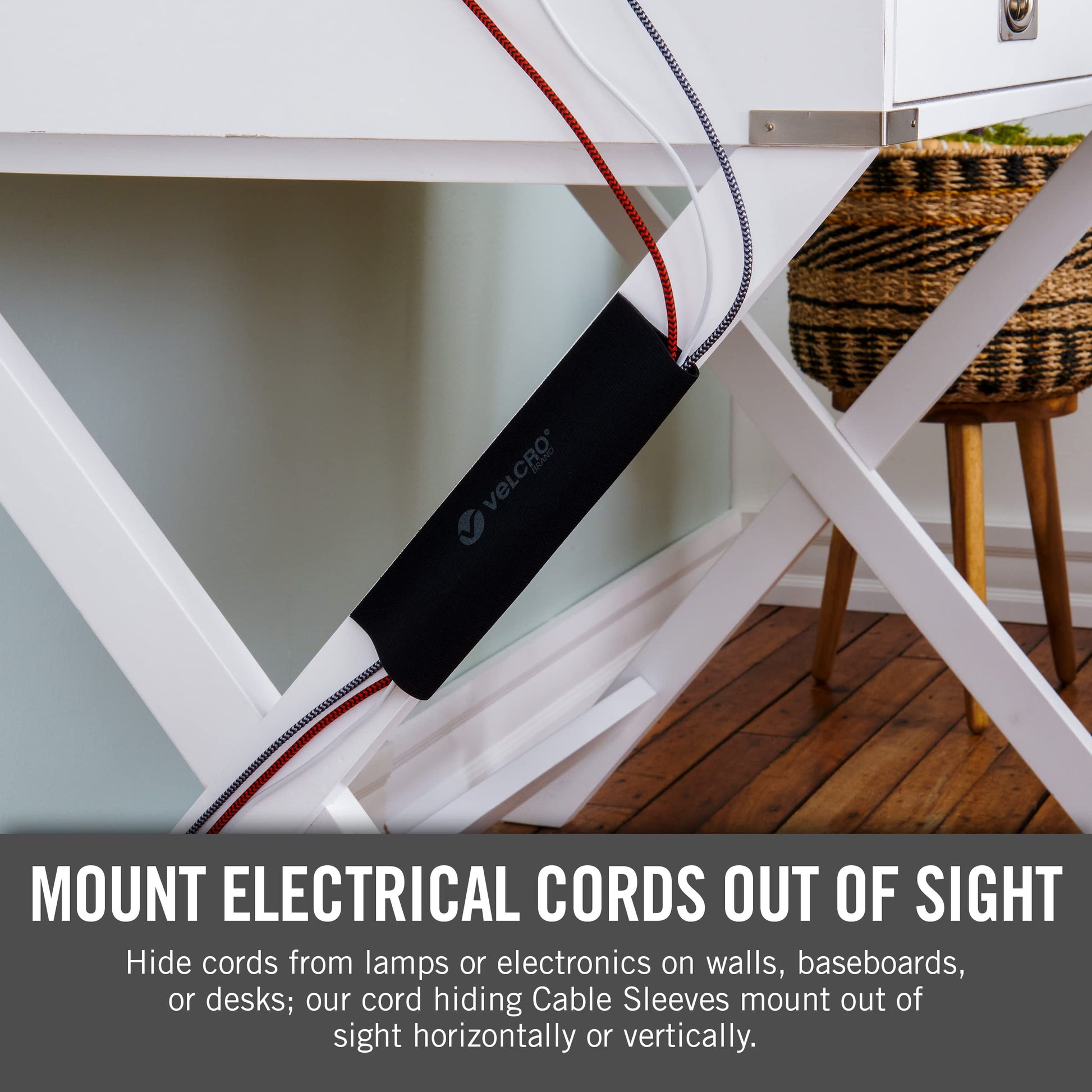 • MOUNTABLE CABLE SLEEVE FOR WALLS OR DESK: Versatile cable management system, VELCRO Brand wire organizer sleeves mount seamlessly on walls or desk to hide cords