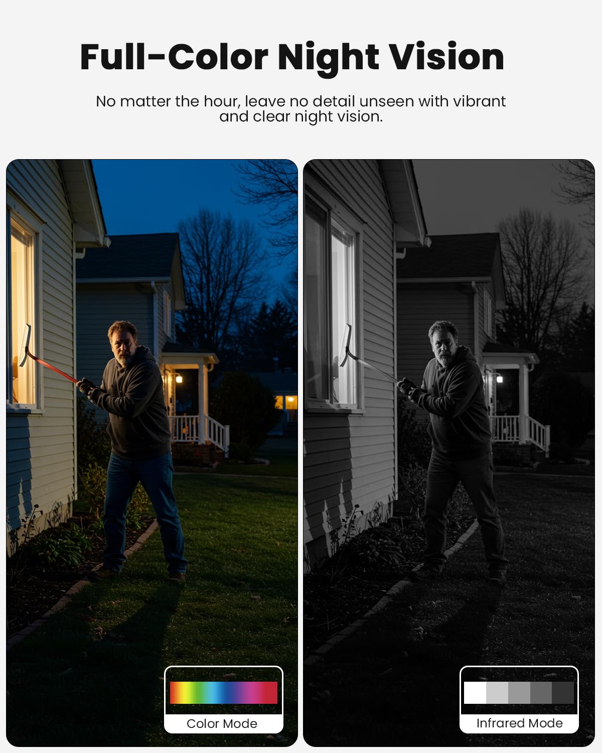 • [Ultra 2K HD & Smart Night Vision] VIZIUUY outdoor wifi camera captures super HD videos in the resolution of 2304x1296 (3 megapixels),it is 1.5 times more detailed than 1080p. 4pcs infrared leds combine with 18pcs white leds create 3 kinds of night vision modes to protect your home at night. You can choose infrared B/W night vision to see farther or enable color night vision to see details as clearly as daylight