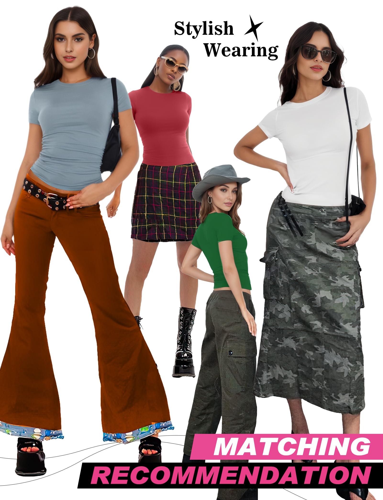 • VERSATILE WARDROBE STAPLE - Whether it's for a relaxed day, an rigorous workout, or a night out, the casual basic short sleeve shirts are incredibly versatile, ideal to pair with shorts, jeans, skirts, yoga pants, or cargo pants, giving you a casual yet trendy Y2K vibe. These essential going-out tops are a must-have for summer 2025, guaranteeing that you stay ahead of the fashion trend.
