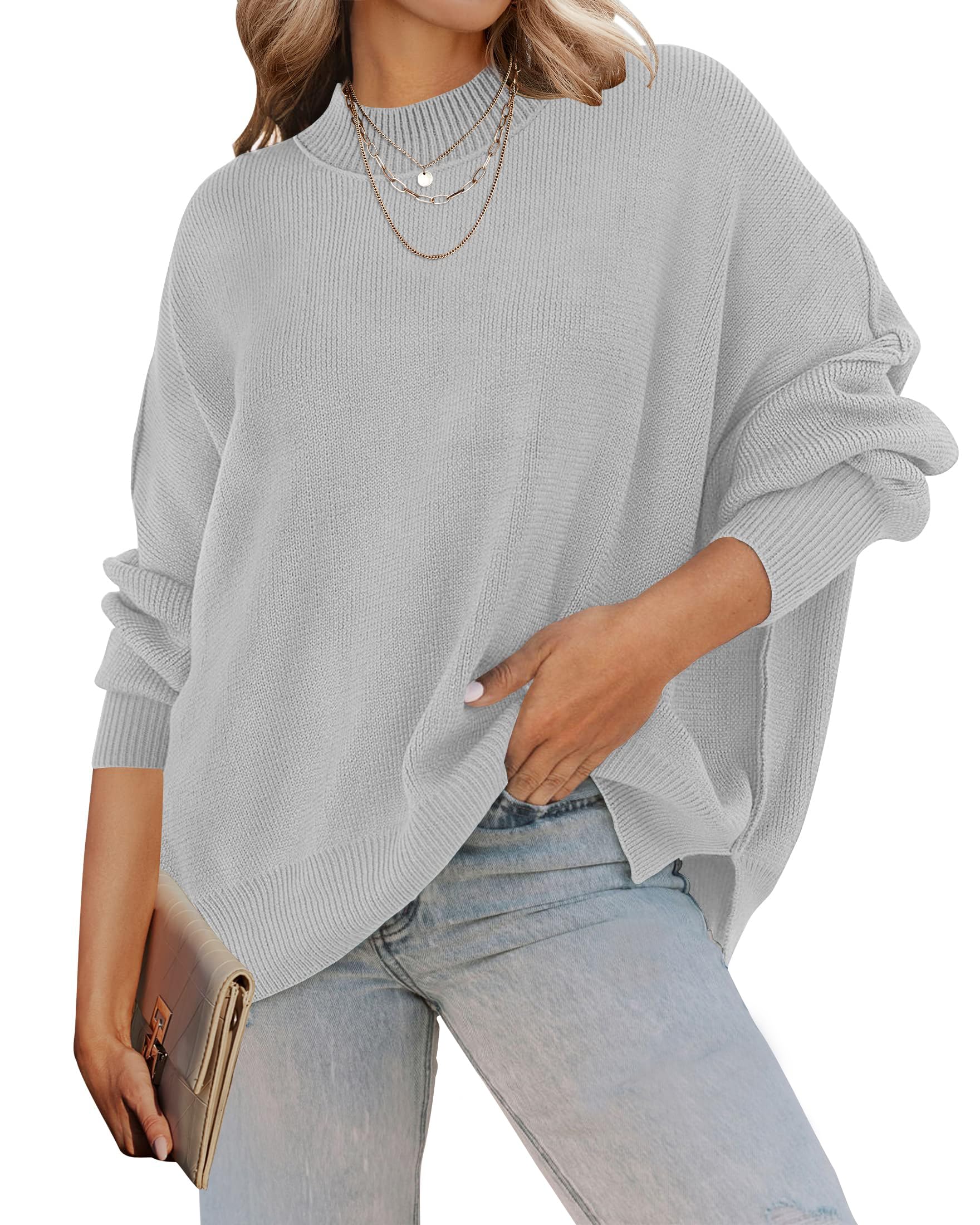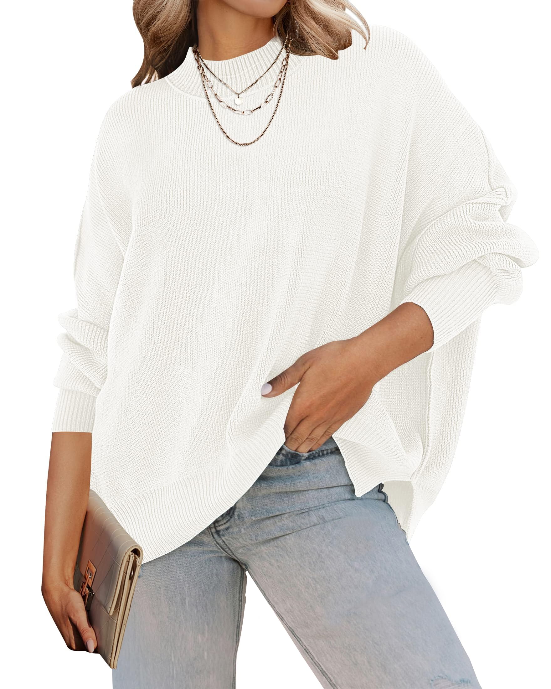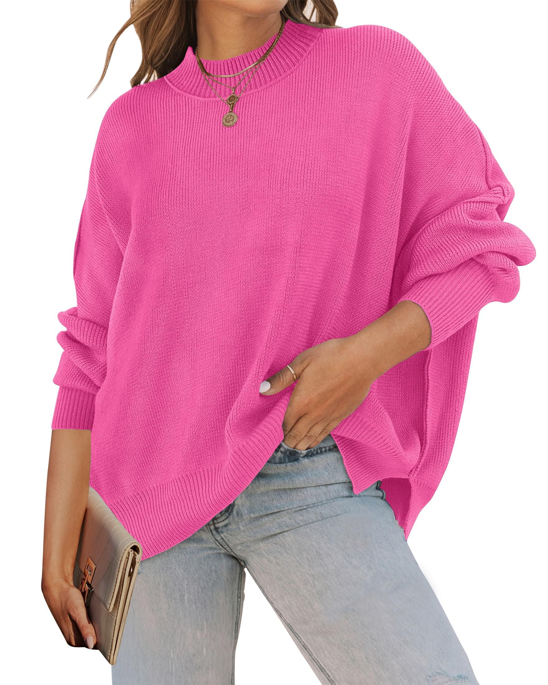 ZESICA Women's Fall 2025 Casual Long Sleeve Crew Neck Side Slit Oversized Ribbed Knit Pullover Sweater Tops